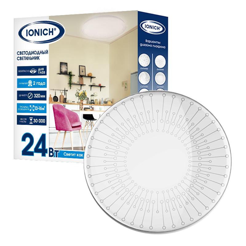 Светильник светодиодный 2160 24Вт 4000К IP20 1680лм d320х60мм бытовой настенно-потолочный IONICH 1704