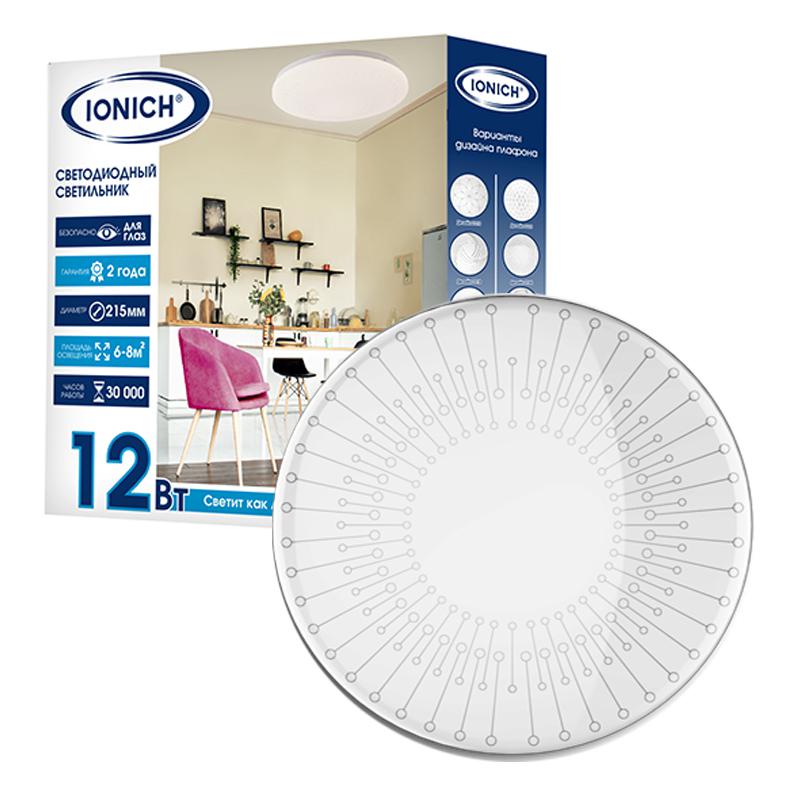Светильник светодиодный 2160 12Вт 4000К IP20 850лм d215х50мм бытовой настенно-потолочный IONICH 1700