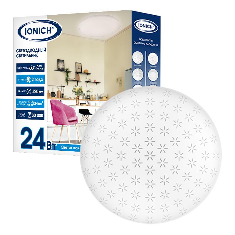 Светильник светодиодный 2219 24Вт 4000К IP20 1680лм d320х60мм бытовой настенно-потолочный IONICH 1698