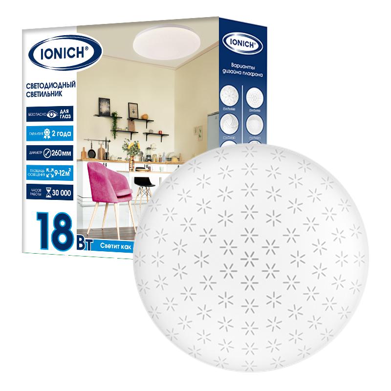 Светильник светодиодный 2218 18Вт 6500К IP20 1260лм d260х55мм бытовой настенно-потолочный IONICH 1691