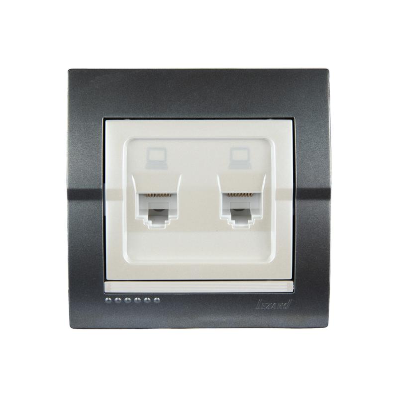 702-2930-141 | Розетка компьютерная 2-м СП Deriy RJ45 темн. сер./жемчуж./бел. метал. LEZARD