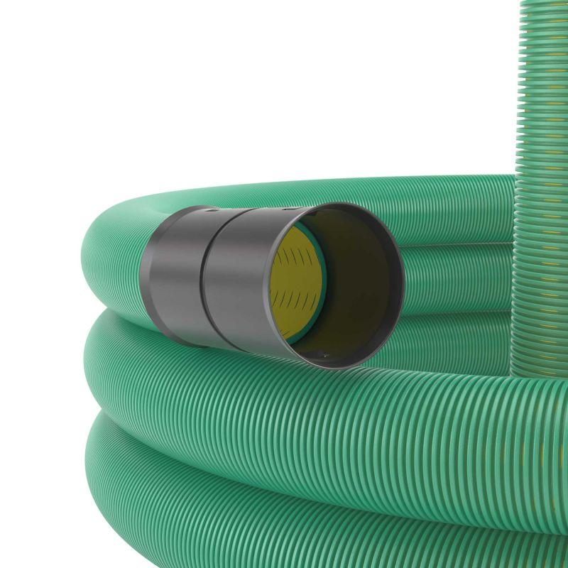 Труба гофрированная двустенная ПНД гибкая дренажная d200мм SN8 перфорация 360град. зел. (уп.35м) DKC 140920-8K