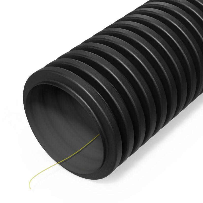 Труба гофрированная двустенная ПНД гибкая d110мм с протяжкой SN12 450 стойкая к УФ черн. (уп.50м) Промрукав PR15.0309