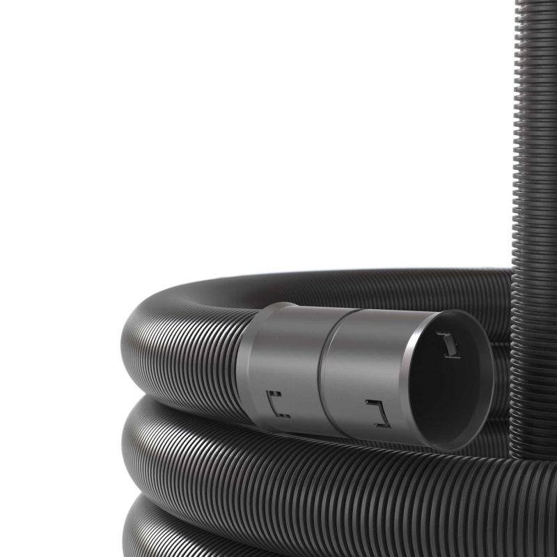 Труба гофрированная двустенная ПНД гибкая d110мм с протяжкой с муфтой для кабельной канализации SN8 450Н черн. (уп.50м) DKC 121911A