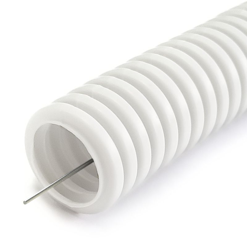 Труба гофрированная ПЛЛ легкая d32мм с протяжкой безгалоген. (HF) (НГ) бел. (уп.25м) Промрукав PR02.0217