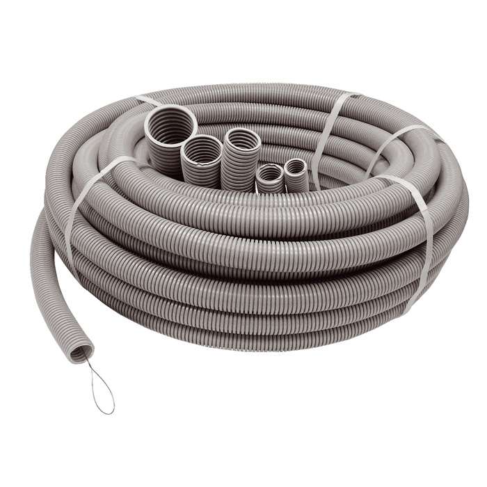 Труба гофрированная ПВХ тяжелая d40мм с протяжкой сер. (уп.15м) Ruvinil 14011