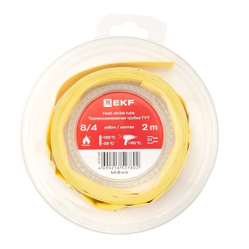 tut-8-y-b | Трубка термоусадочная ТУТ нг 8/4 желт. ролик 2 м EKF