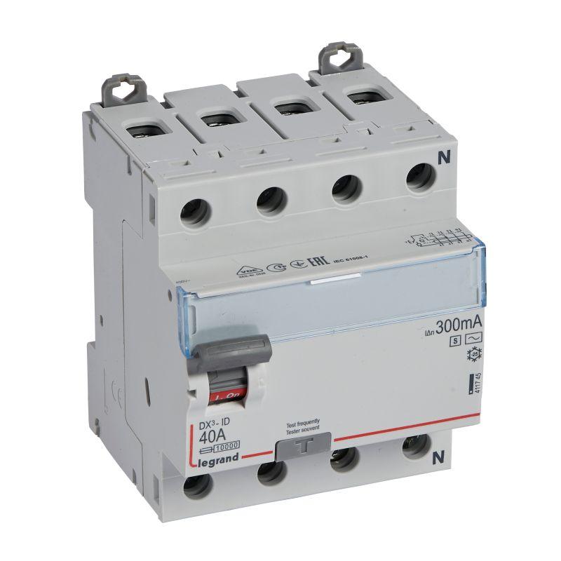 411745 | Выключатель дифференциального тока (УЗО) 4п 40А 300мА тип ACS DX3 N справа Leg