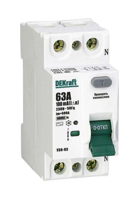 14064DEK | Выключатель дифференциального тока (УЗО) 2п 63А 100мА тип AC 6кА УЗО-03 DEKraft