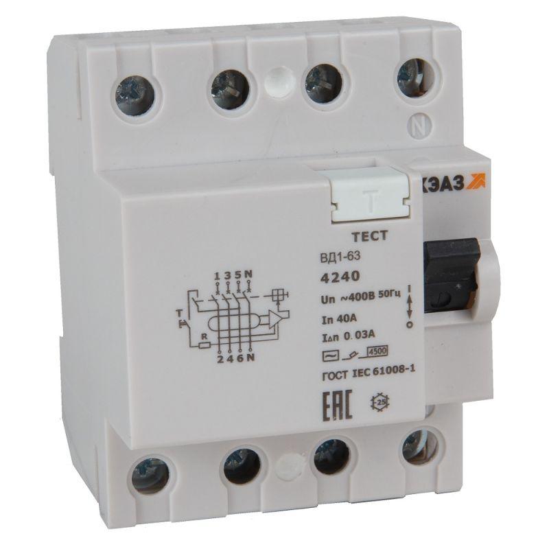 Выключатель дифференциального тока (УЗО) 4п 40А 300мА тип AC ВД1-63 4440 УХЛ4 КЭАЗ 221961