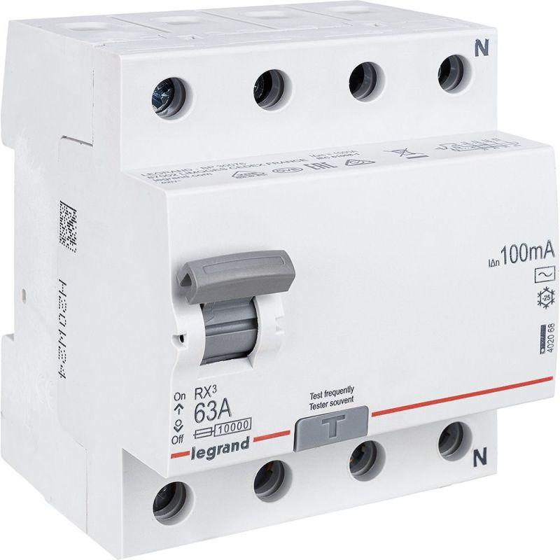 402068 | Выключатель дифференциального тока (УЗО) 4п 63А 100мА тип AC RX3 ИЭК Leg