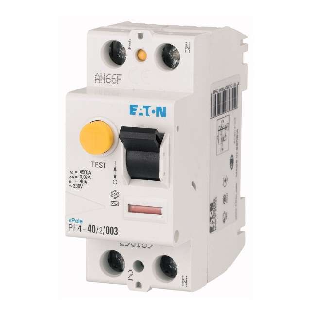 293169 | Выключатель дифференциального тока (УЗО) 2п 40А 30мА тип AC 4.5кА PF4 2мод. EATON