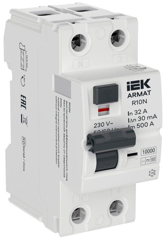 Выключатель дифференциального тока (УЗО) 2п 32А 30мА тип B ВДТ R10N ARMAT IEK AR-R10N-2-032B030