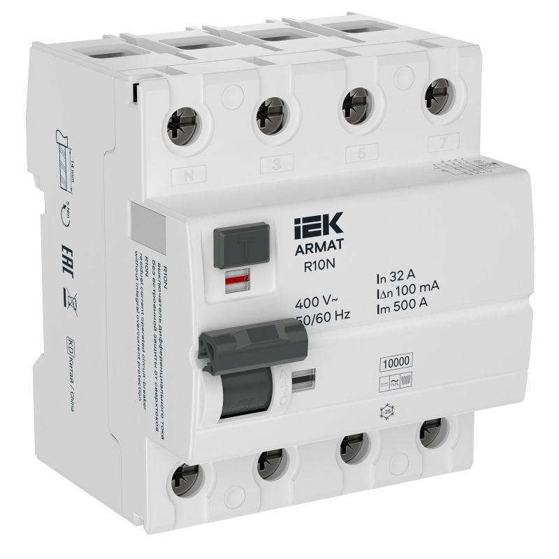 AR-R10N-4-032B100 | Выключатель дифференциального тока (УЗО) 4п 32А 100мА тип B ВДТ R10N ARMAT IEK
