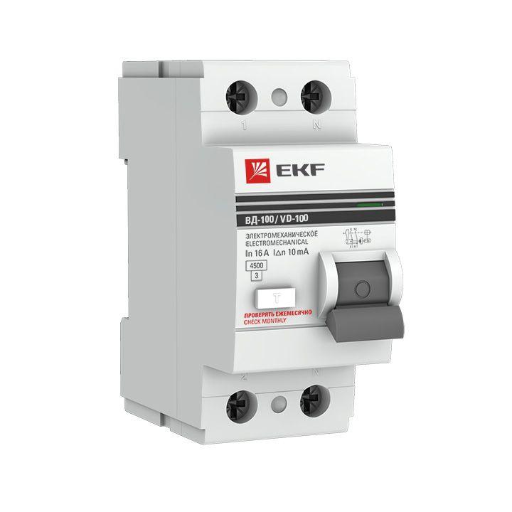 Выключатель дифференциального тока (УЗО) 2п 80А 30мА ВД-100 (электромех.) PROxima EKF elcb-2-80-30-em-pro