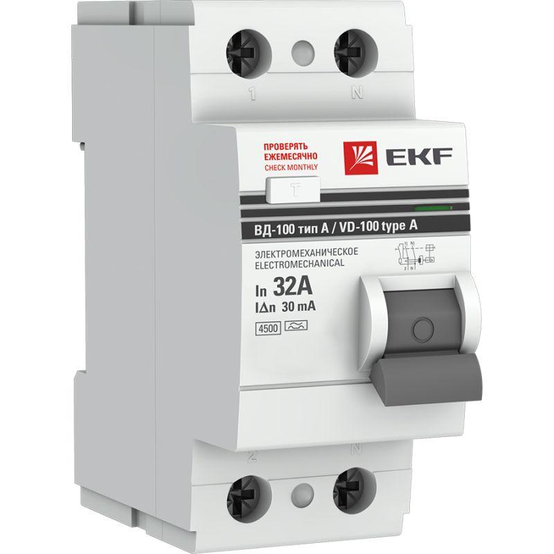 Выключатель дифференциального тока (УЗО) 2п 32А 30мА тип A ВД-100 (электромех.) PROxima EKF elcb-2-32-30-em-a-pro