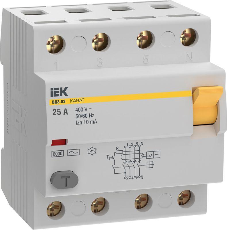 Выключатель дифференциального тока (УЗО) 4п 25А 30мА 6кА тип A ВД3-63 KARAT IEK MDV21-4-025-030