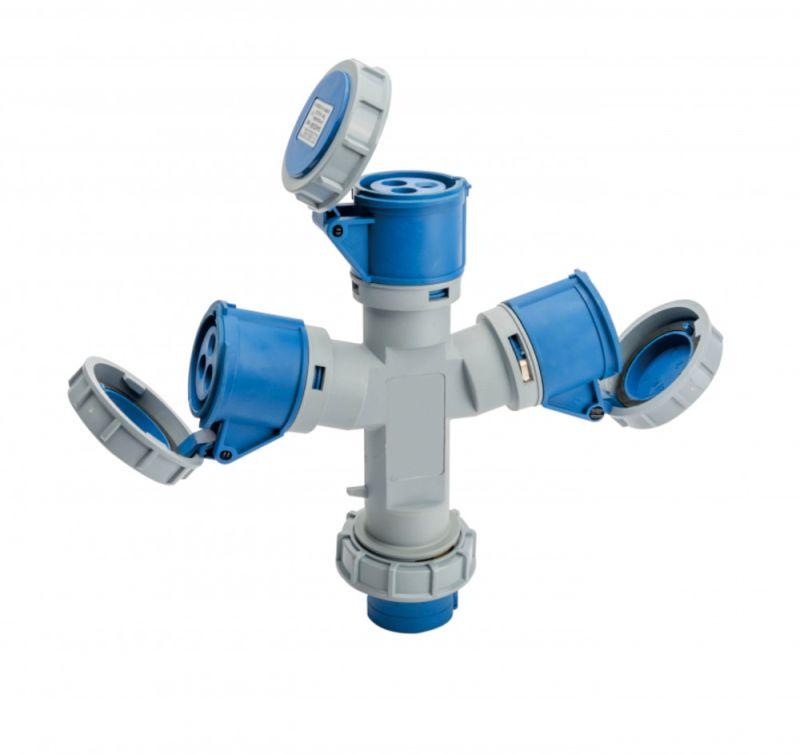 26293DEK | Адаптер трехлучевой 2Р+РЕ 32А 250В IP67 АП-103 DEKraft