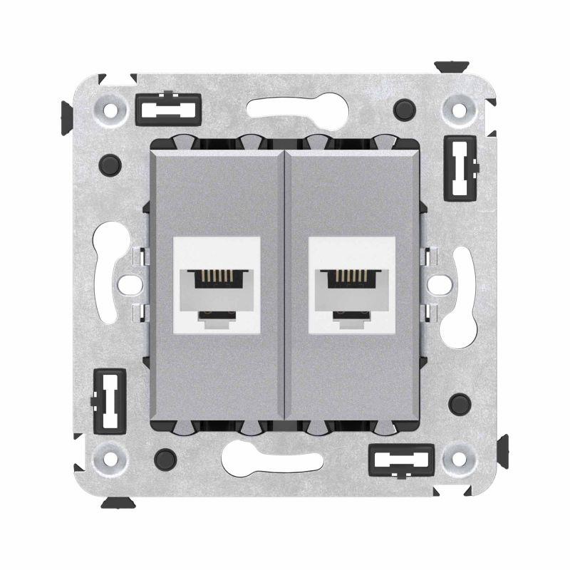 Розетка телефонная 2-м СП Avanti "Закаленная сталь" RJ12 без шторок механизм DKC 4404614