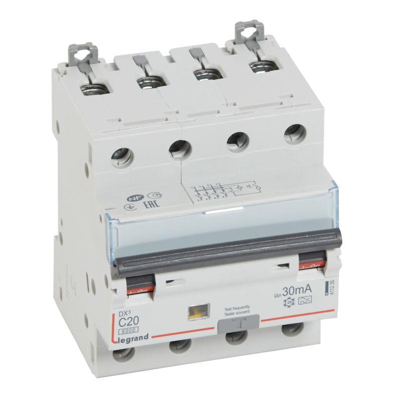 Выключатель автоматический дифференциального тока 4п C 20А 30мА F 6кА DX3 F Leg 411245