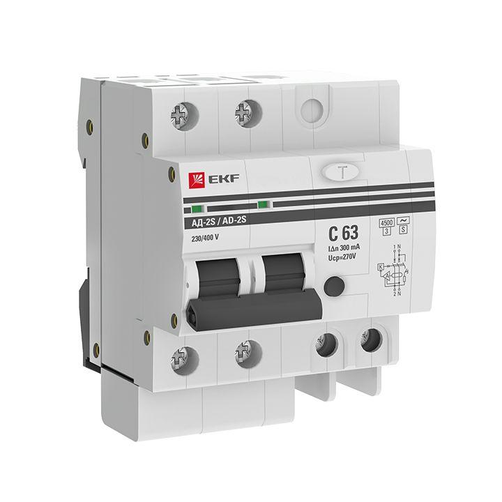 DA2-63-300S-pro | Выключатель автоматический дифференциального тока C 63А 300мА тип AC 4.5кА АД-2 S (электрон.) защита 270В PROxima EKF