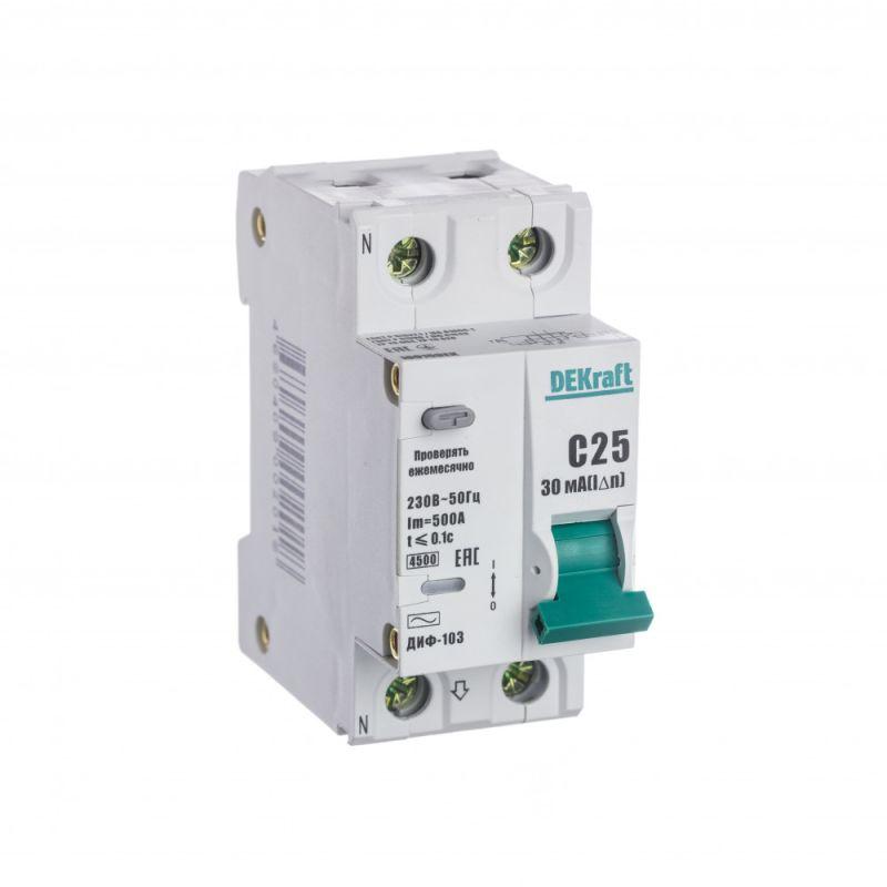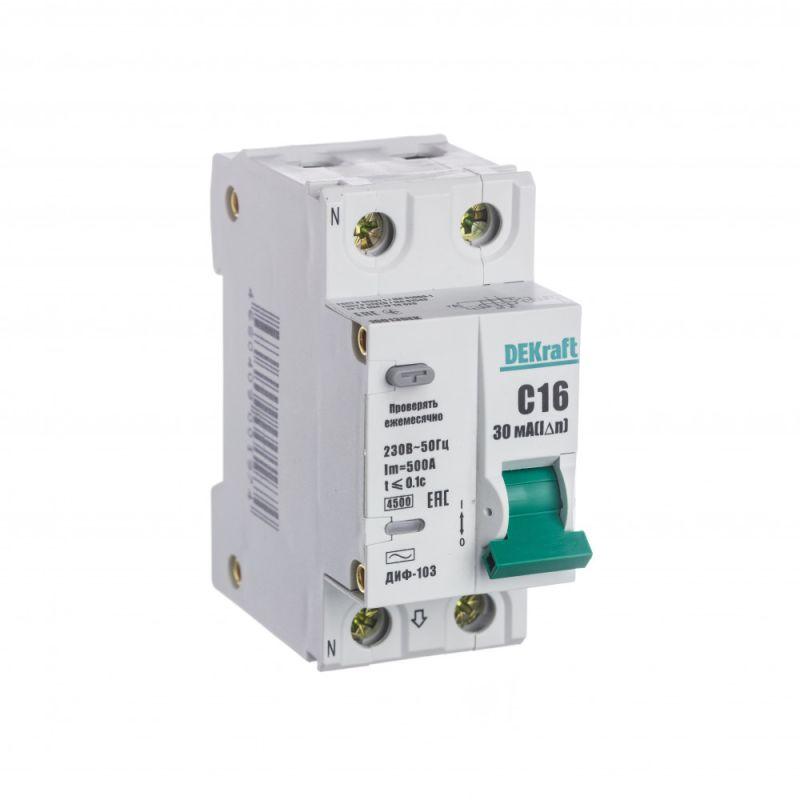 Выключатель автоматический дифференциального тока 2п (1P+N) C 16А 30мА тип AC 4.5кА ДИФ-103 со встроен. защит. от сверхтоков DEKraft 16013DEK