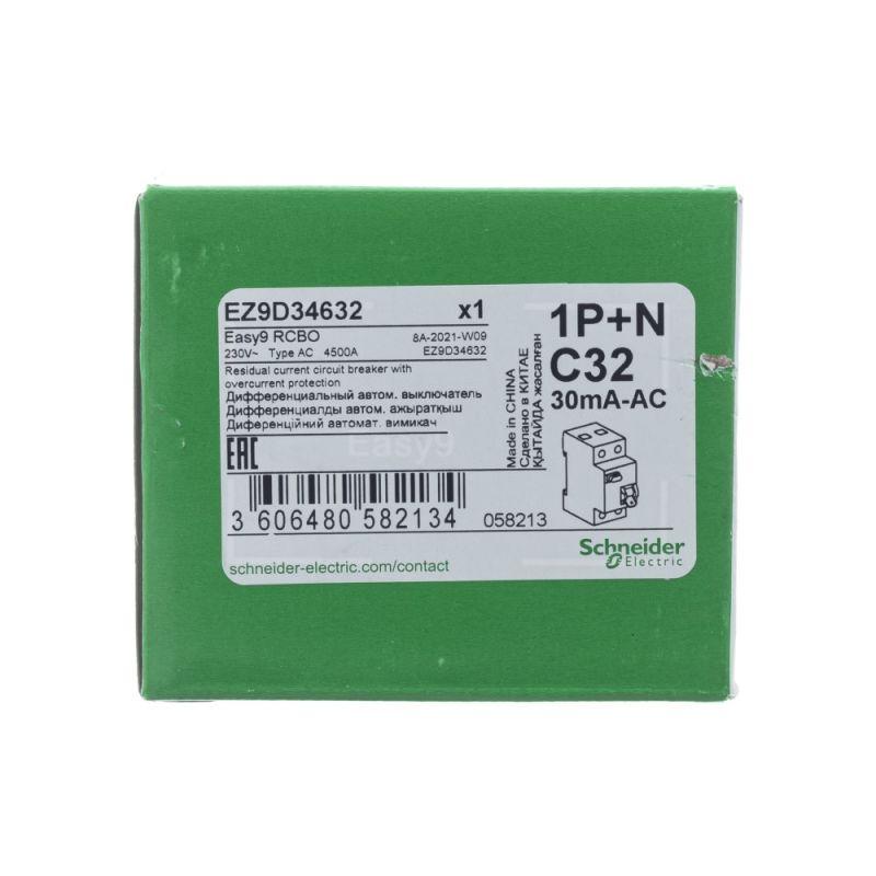 Выключатель автоматический дифференциального тока 2п (1P+N) C 32А 30мА тип AC 4.5кА EASY9 2мод. SchE EZ9D34632