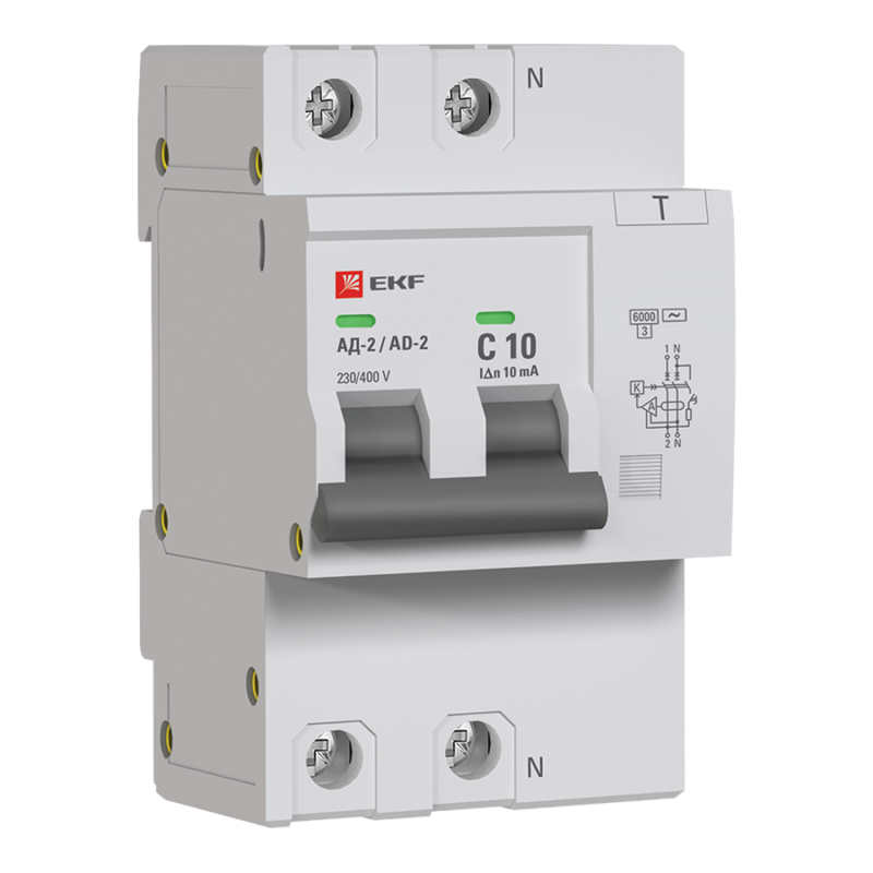 Выключатель автоматический дифференциального тока C 10А 10мА тип AC 6кА АД-2 (электрон.) PROxima EKF DA2-6-10-10-pro