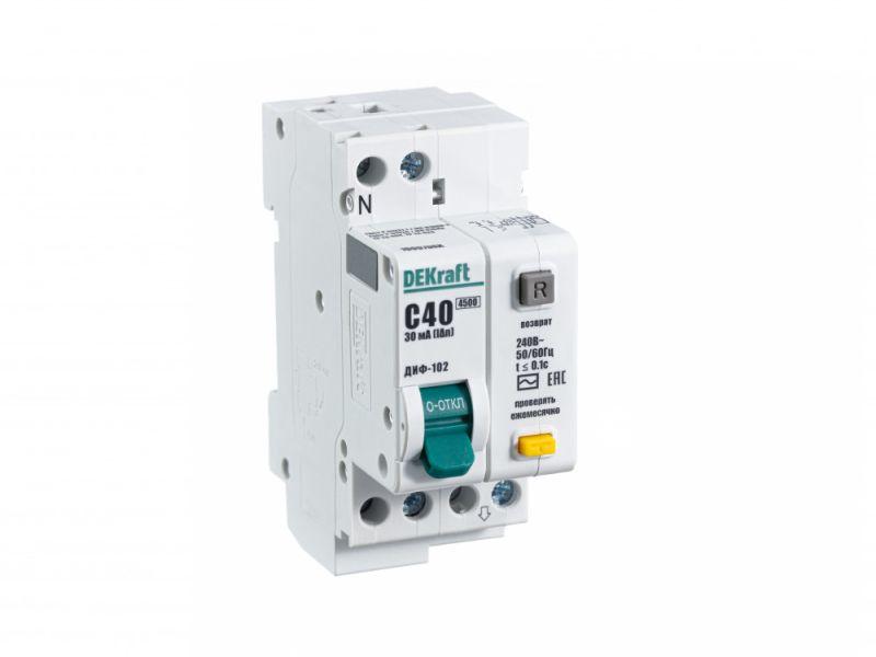 Выключатель автоматический дифференциального тока 2п (1P+N) C 40А 30мА тип AC 4.5кА ДИФ-102 2мод. DEKraft 16007DEK