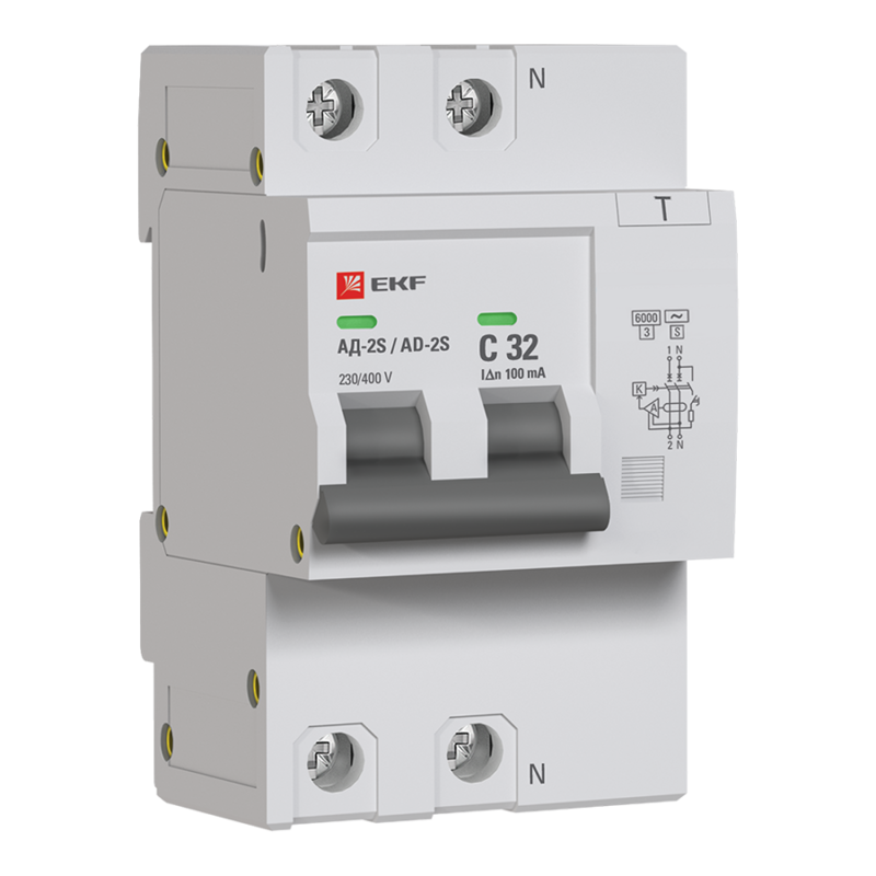 DA2-6-32-100S-pro | Выключатель автоматический дифференциального тока C 32А 100мА тип AC 6кА АД-2 S (электрон.) защита 270В PROxima EKF