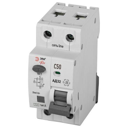 Выключатель автоматический дифференциального тока 2п (1P+N) C 50А 30мА тип A 6кА АД-32 электрон. PRO D326E2C50A30 Эра Б0059202