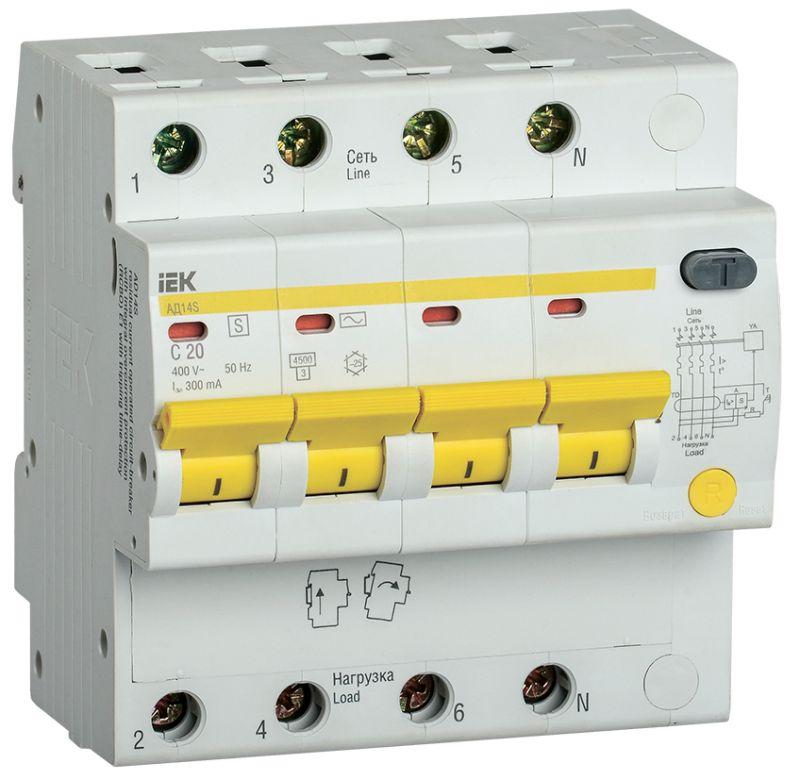 Выключатель автоматический дифференциального тока селективный 4п 20А 100мА тип AC АД14S IEK MAD13-4-020-C-100