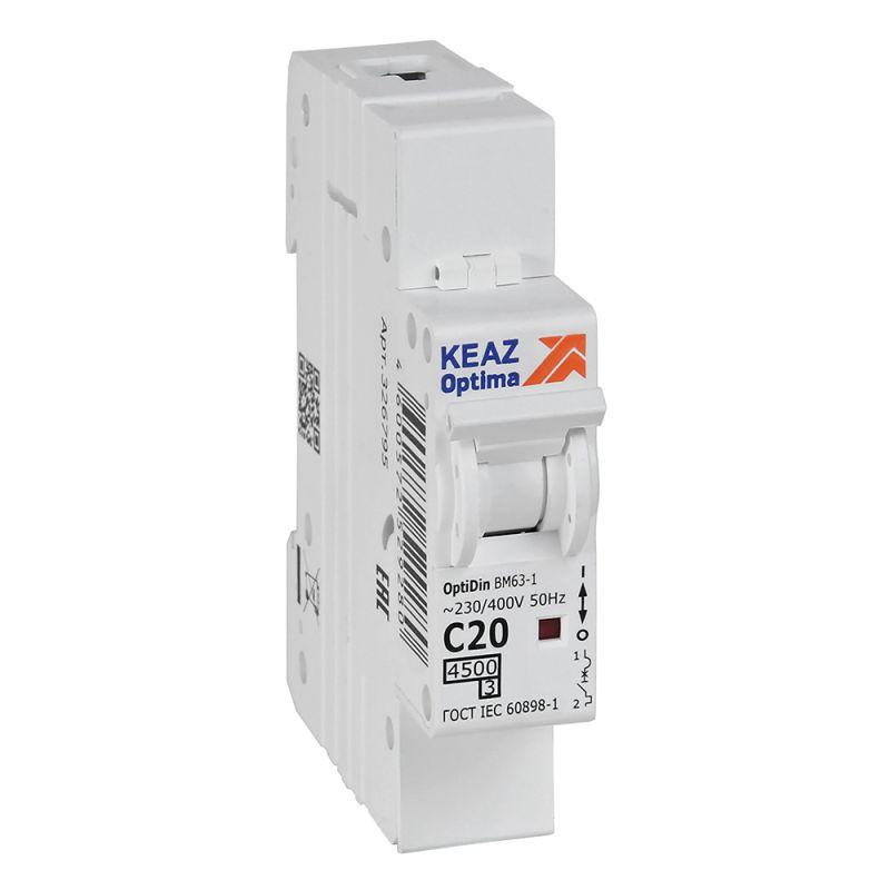 Выключатель автоматический модульный 1п C 20А 4.5кА OptiDin BM63-1C20-4.5-УХЛ3 КЭАЗ 326795