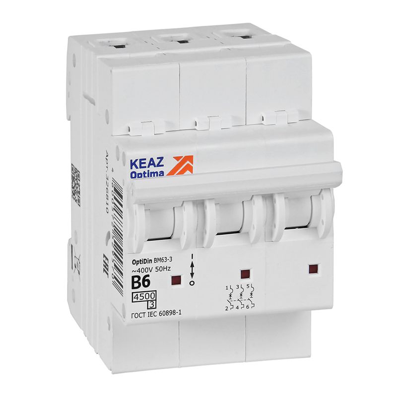 329517 | Выключатель автоматический модульный 3п B 6А OptiDin BM63-3B6-4.5-УХЛ3 КЭАЗ