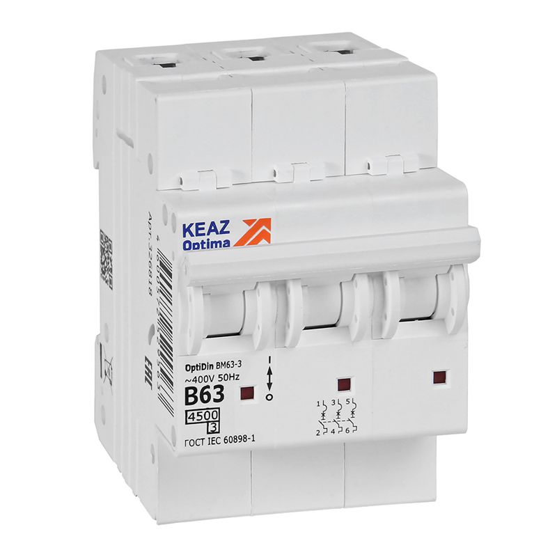 Выключатель автоматический модульный 3п B 63А OptiDin BM63-3B63-4.5-УХЛ3 КЭАЗ 329525