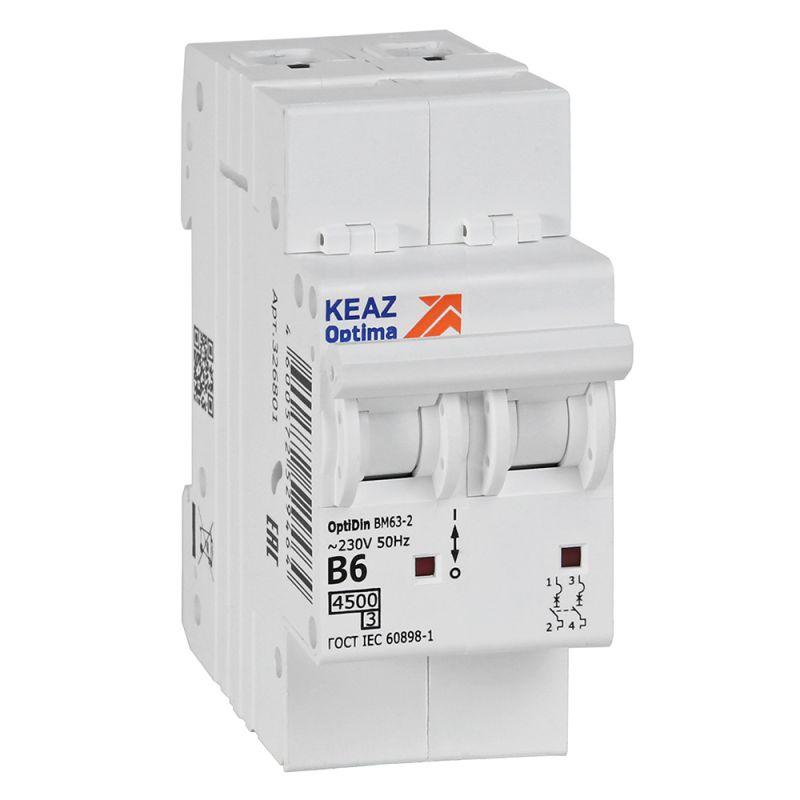 329508 | Выключатель автоматический модульный 2п B 6А 4.5кА OptiDin BM63-2B6-4.5-УХЛ3 КЭАЗ
