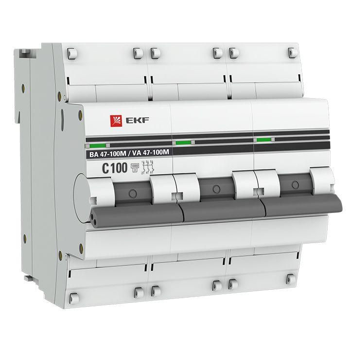 mcb47100m-3-100C-pro | Выключатель автоматический модульный 3п C 100А 10кА ВА 47-100M электромагнит. расцеп. PROxima EKF