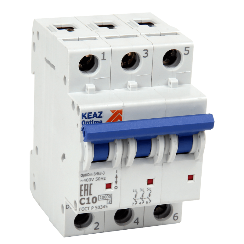 249257 | Выключатель автоматический модульный 3п C 16А 10кА OptiDin BM63-3C16-10-УХЛ3 КЭАЗ