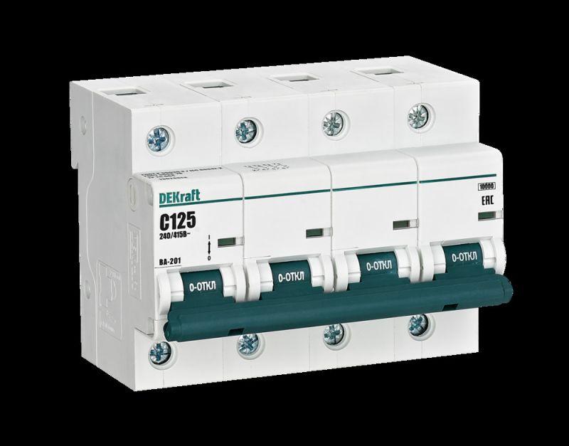 Выключатель автоматический модульный 4п D 125А 10кА ВА-201 DEKraft 13032DEK