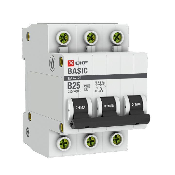 Выключатель автоматический модульный 3п B 25А 4.5кА ВА 47-29 Basic EKF mcb4729-3-25-B