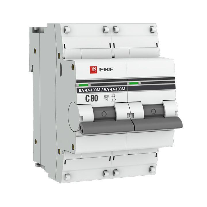 Выключатель автоматический модульный 2п C 80А 10кА ВА 47-100M электромагнит. расцеп. PROxima EKF mcb47100m-2-80C-pro