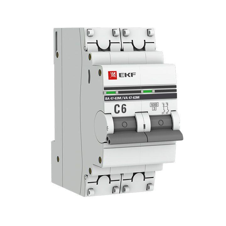 mcb4763m-6-2-6C-pro | Выключатель автоматический модульный 2п C 6А 6кА ВА 47-63M электромагнит. расцеп. PROxima EKF
