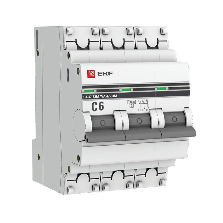 mcb4763m-6-3-6C-pro | Выключатель автоматический модульный 3п C 6А 6кА ВА 47-63M электромагнит. расцеп. PROxima EKF