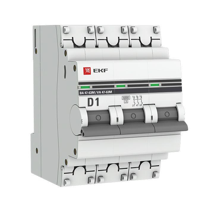 Выключатель автоматический модульный 3п D 1А 6кА ВА 47-63M с одним магнит. расцеп. EKF mcb4763m-6-3-1D-pro