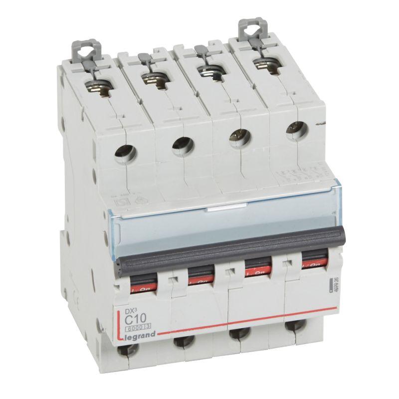 407926 | Выключатель автоматический модульный 4п C 10А 10кА DX3 6000 4мод. 400В Leg