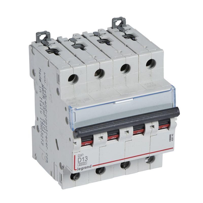 408146 | Выключатель автоматический модульный 4п D 13А 10кА DX3 6000 4мод. 400В Leg