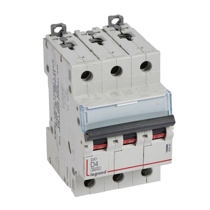 408084 | Выключатель автоматический модульный 3п D 4А 10кА DX3 6000 3мод. 400В Leg
