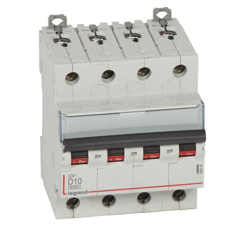 408145 | Выключатель автоматический модульный 4п D 10А 10кА DX3 6000 4мод. 400В Leg