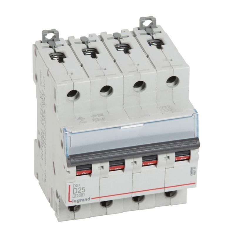 408149 | Выключатель автоматический модульный 4п D 25А 10кА DX3 6000 4мод. 400В Leg
