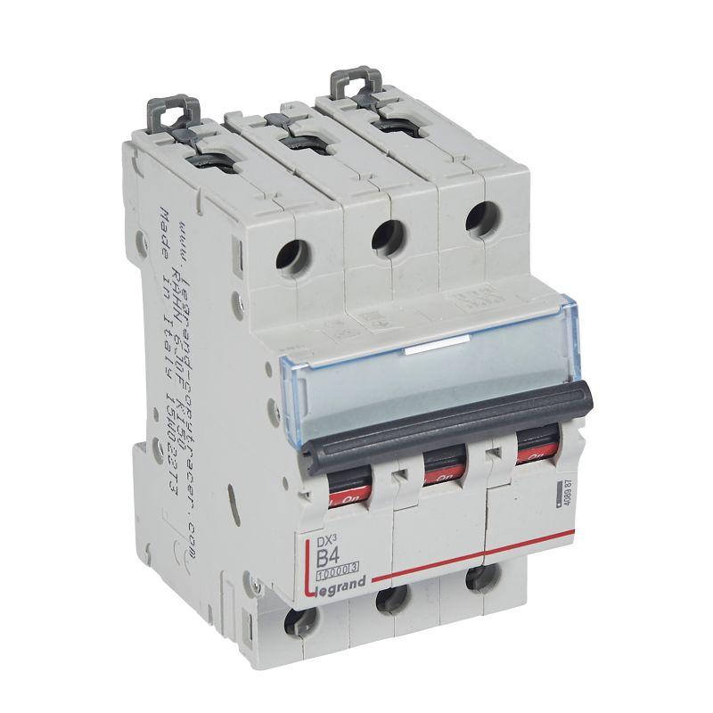 408987 | Выключатель автоматический модульный 3п B 4А 16кА DX3 10000 3мод. 400В Leg
